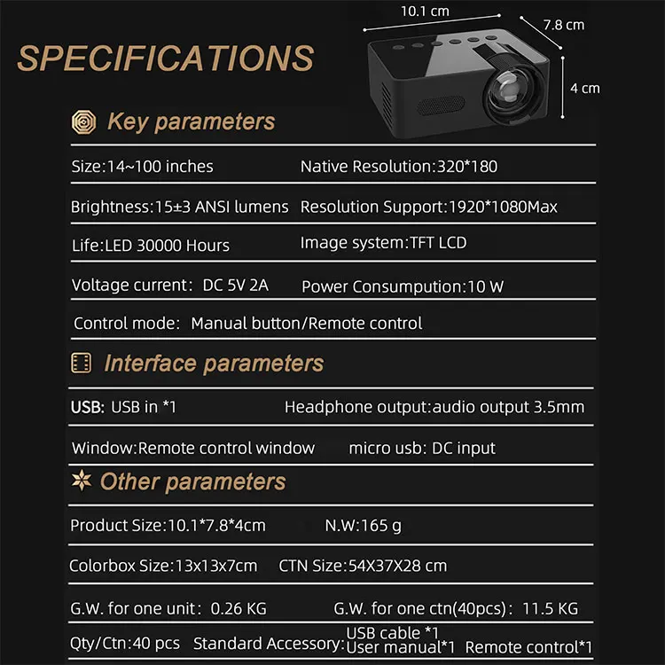 YT100 Home Mini Portable Projector USB Power Supply HD Home Small Wireless Same Screen Phone Projection